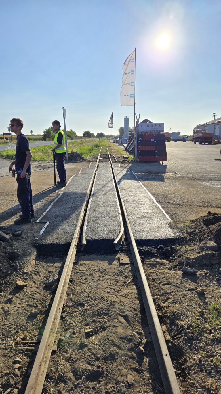 Hétfőn már kora reggel csákányok és szerszámok hangja törte meg a csendet, ugyanis csapatunk nekilátott az évek óta rossz minőségű útátjárót rendbetenni. Az idő kedves volt hozzánk, így nem a hőségben kellett dolgoznunk. Délre már a munka fele meg is volt, hála a szakértő csapatnak akik a segítségünkre voltak. Délutánra már csak az aszfaltréteg felhúzása maradt, ezzel koronázva a felujítást. Az útburkolat alatt a vasúti pálya is megújult, ezzel biztonságossá téve a közlekedést a vasúti járművek számára is.